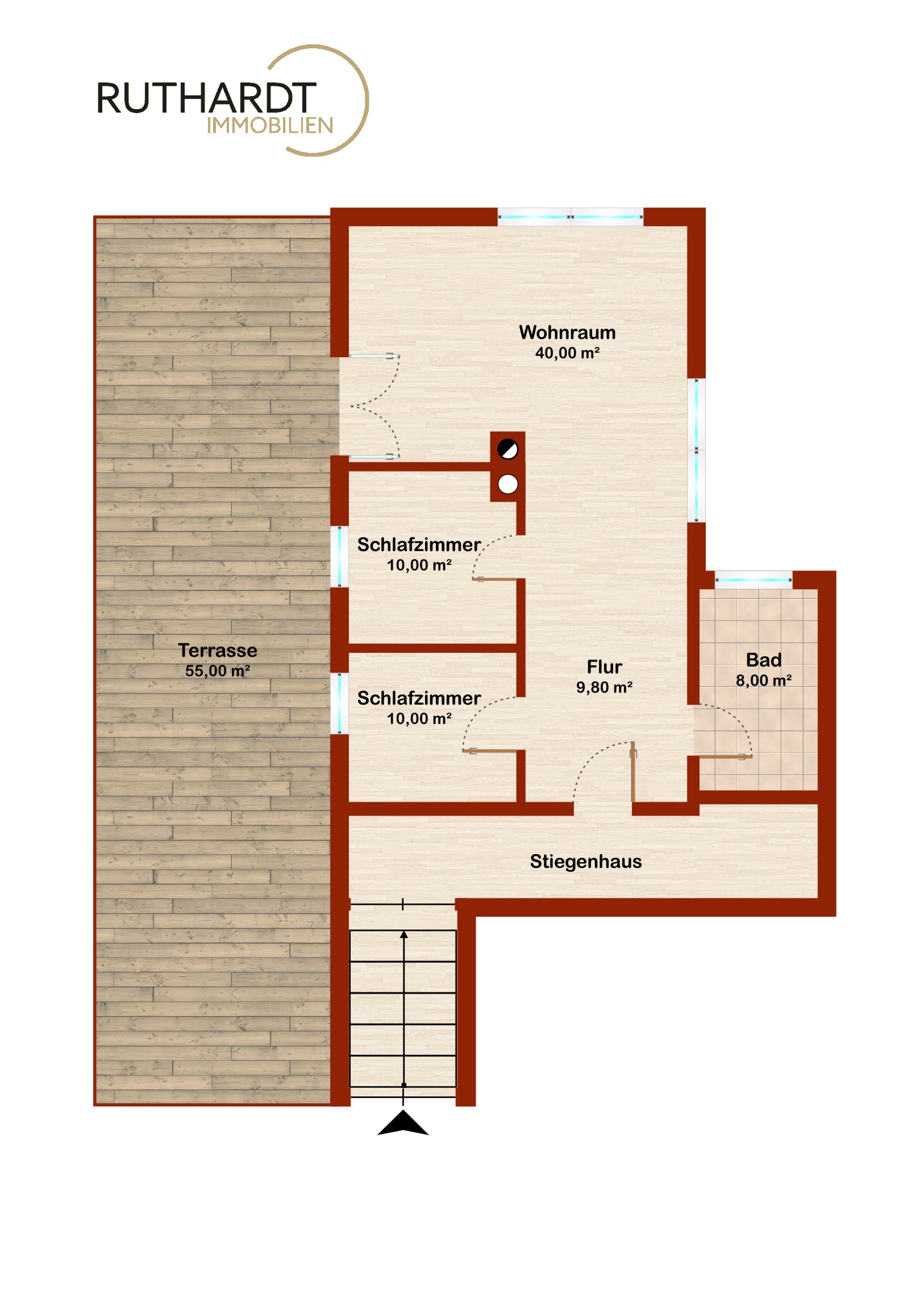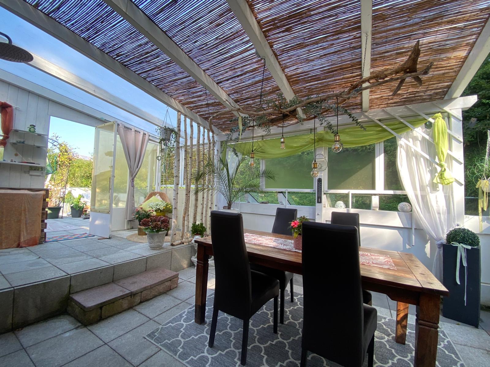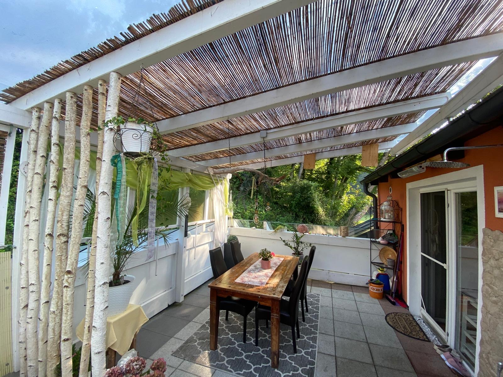 Ein Highlight ist die großzügige, rund 55 m² große Terrasse: teilweise überdacht, uneinsehbar und mit Außendusche ausgestattet – ideal zum Entspannen und Genießen.